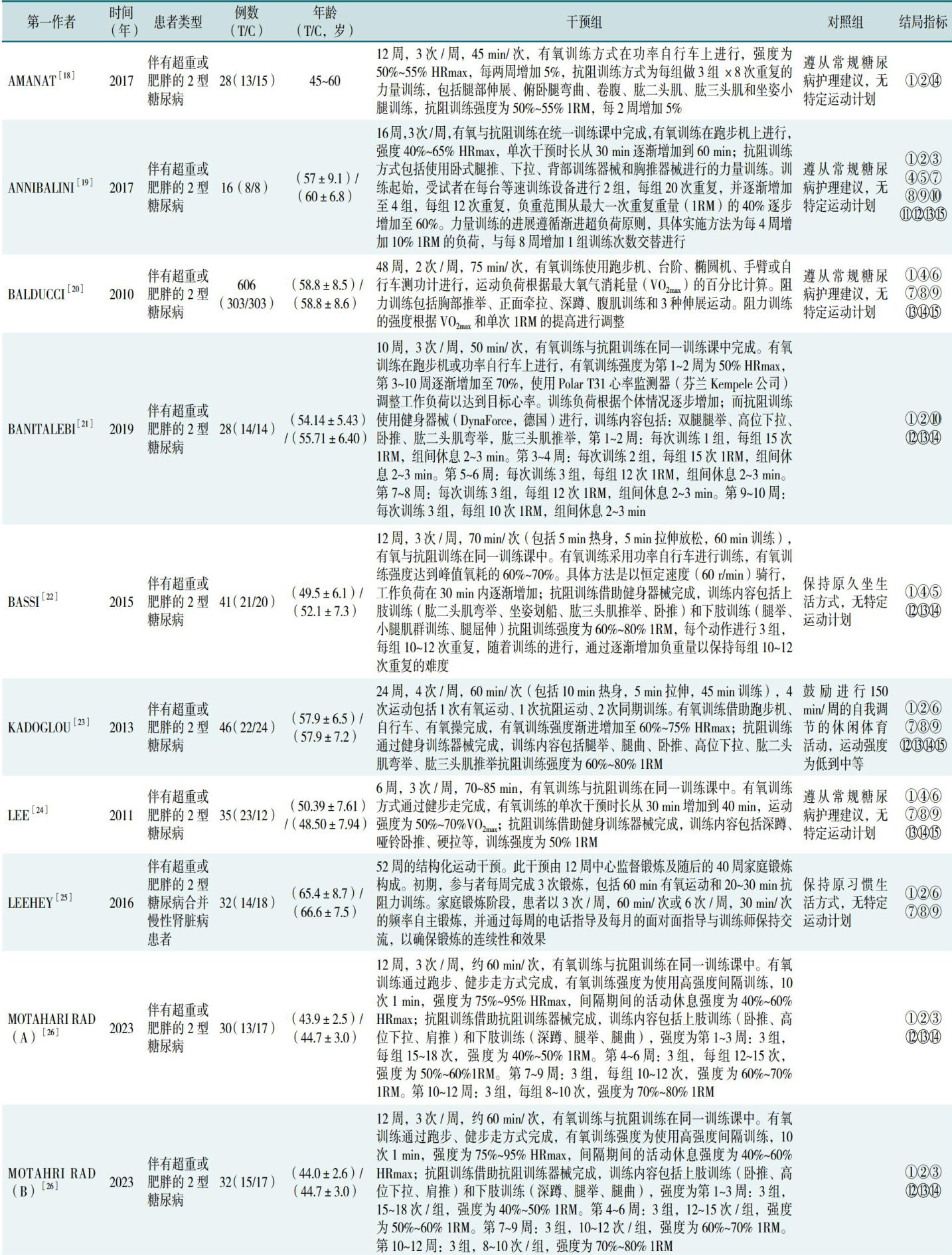 【摘要】背景伴有超重或肥胖的2型糖尿病是一种日益严重的全球公共卫生问题,患者常伴有胰岛素抵抗、代谢异常及慢性炎症。尽管运动干预被广泛认为能改善这些状况,但同期有氧与抗阻训练对伴有超重或肥胖的2型糖尿病患者的具体效果及其机制尚存在争议。目的通过Meta分析评估同期训练对伴有超重或肥胖的2型糖尿病患者身体成分、心肺耐力、糖脂代谢、炎症因子指标的效果,为该类人群非药物无创疗法的制订提供参考。方法检索Pu
