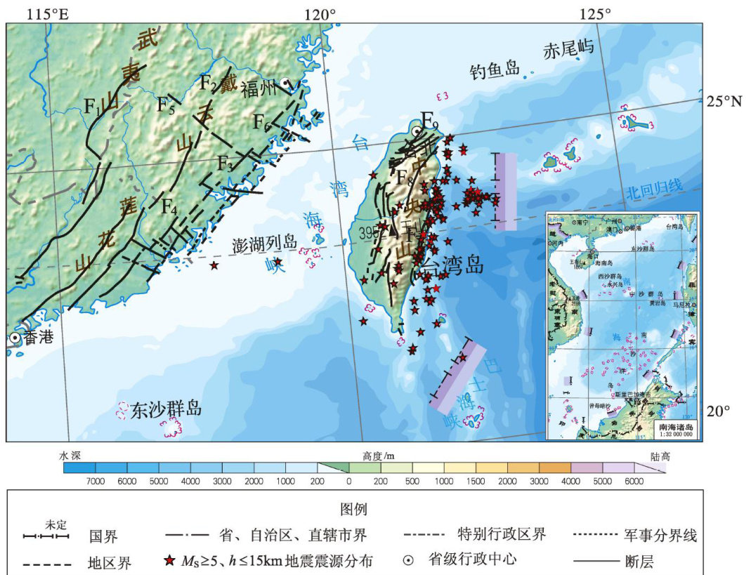 摘要:介绍了小波多尺度分析方法的基本原理,利用bior3.5小波对理论模型的浅部和深部异常进行了有效分离,初步验证了该方法的有效性。利用SGG-UGM-2模型和Earth2014 地形模型计算了台湾海峡及其邻区的布格重力异常,并基于小波多尺度分析方法对其进行5阶分解和近似场源深度的计算,得到不同深度的重力异常。结果显示:研究区的布格重力异常值由台湾海峡中心向西北侧华南大陆逐渐降低,异常幅值为 -20~580mGal ,陆地异常明显低于海洋异常,其中最低值位于扬子板块,最高值位于菲律宾板块。小波多尺度分解得到的1\~5阶重力异常细节场可以反映出研究区的断裂带由不同深度构造运动产生。小波分解的4、5阶重力异常细节场在马尼拉海沟区域和加瓜海脊的异常特征反映了研究区板块俯冲生热使得下地壳高温熔融物质向上涌的动力学过程;对比分析各阶重力异常细节场和断层分布的特征发现研究区的断裂带由不同深度构造运动产生。3、4阶重力异常细节场说明研究区的强震发生在板块边界处、次级地块的边界活动带以及高重力梯度带区域,且震源深部的地壳结构影响浅部强震的发生。