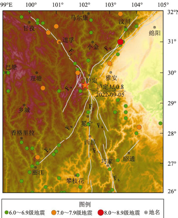 摘要:利用全球重力场模型grav.img.23.1和全球DEM模型 topo_18.1.img 研究了川西地区的布格重力异常特征,利用小波多尺度分析方法对重力异常信号进行分离,研究了该地区的深部物质迁移特征和强震孕育背景;并基于2017—2022年的区域流动重力观测资料,研究了2022年9月5日泸定 Ms6.8 地震前的区域重力场变化特征。结果表明: ① 小波多尺度分解得到的不同深度重力异常特征图像,均在三岔口一石棉一带存在显著的重力异常梯度带和四象限分布特征,表明了该地区深部强烈的物质迁移和密度变化,泸定 Ms6.8 地震震源区处于不同密度地质体的交会区域,具备发生强震的孕震背景; ② 地震前出现了较好的中期前兆性重力变化图像,前期沿鲜水河断裂及玉龙希断裂形成了重力变化高梯度带,泸定 Ms6.8 地震发生在重力变化高梯度带的拐弯处附近,临震前重力场出现了反向变化,并在三岔口地区出现重力异常四象限变化特征,地震发生在重力场反向变化过程中; ③ 依据震质源和震质中模型,分析认为震中南侧的九龙、石棉、冕宁一带的正重力变化可能是导致此次地震发生的主要诱因,引起该重力变化的深部场源可能是主导此次地震的孕震体。