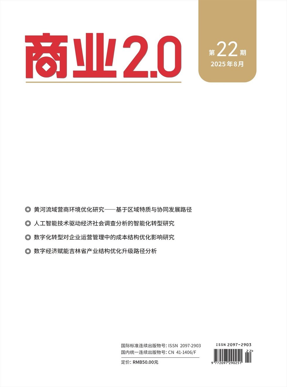 《商业2.0》坚持学术性、时代性、创新性和超前性特点,立足中国现实,面向世界经济理论研究前沿,致力于发表研究改革开放、经济发展和体制转型过程中出现的各种经济问题的具有原创性意义的高水平的理论文章,是宣传党和国家经济改革的方针政策、反映国家现代经济管理与工业改革发展走向和理论研究成果及实践的一份重要读物,是为经济建设和社会发展服务的重要平台。