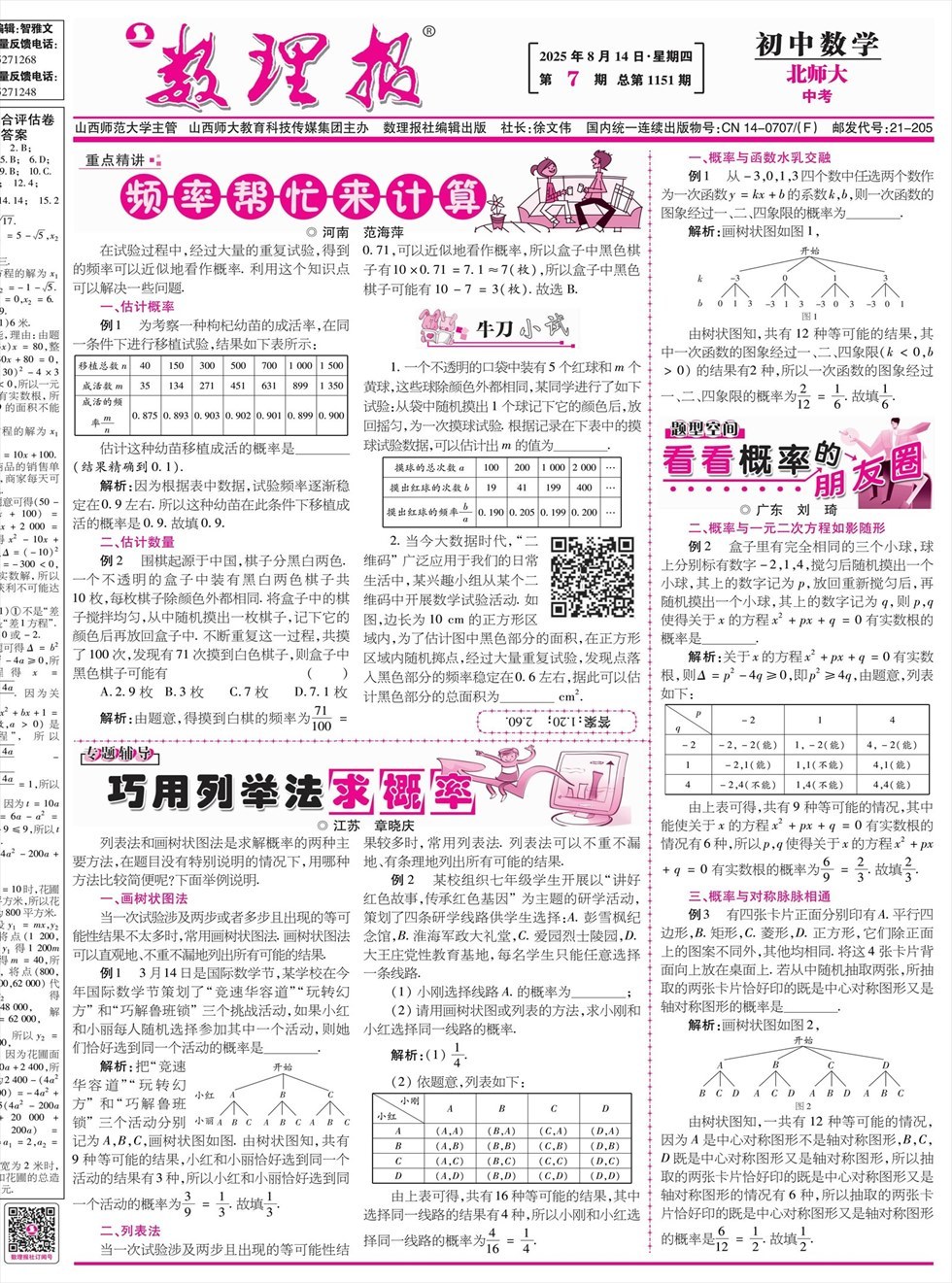 《数理报》是由山西省教育厅主管,山西师范大学主办,面向全国发行的中小学生理科教学辅导类报纸