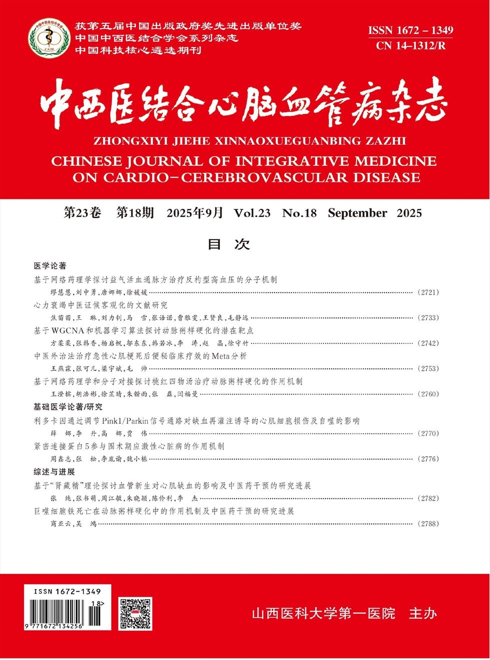 《中西医结合心脑血管病杂志》创刊于2003年1月,山西省卫生和计划生育委员会主管,山西医科大学第一医院与中国中西医结合学会心血管专业委员会和神经科专业委员会共同主办,中国科学院院士、中国中西医结合学会原会长陈可冀院士任名誉总编辑,中国中西医结合学会心血管病专业委员会主任委员吴宗贵教授任总编辑,是中西医结合学会、中华医学会心血管及神经科专业委员会知名专家任编委的国家级期刊,是国内唯一一种中西医结合心脑血管疾病学术刊物。