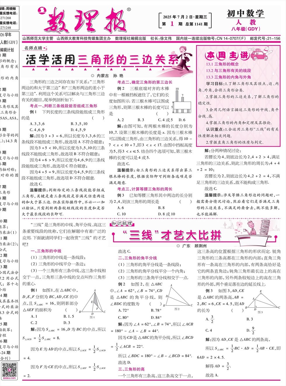 《数理报》是由山西省教育厅主管,山西师范大学主办,面向全国发行的中小学生理科教学辅导类报纸