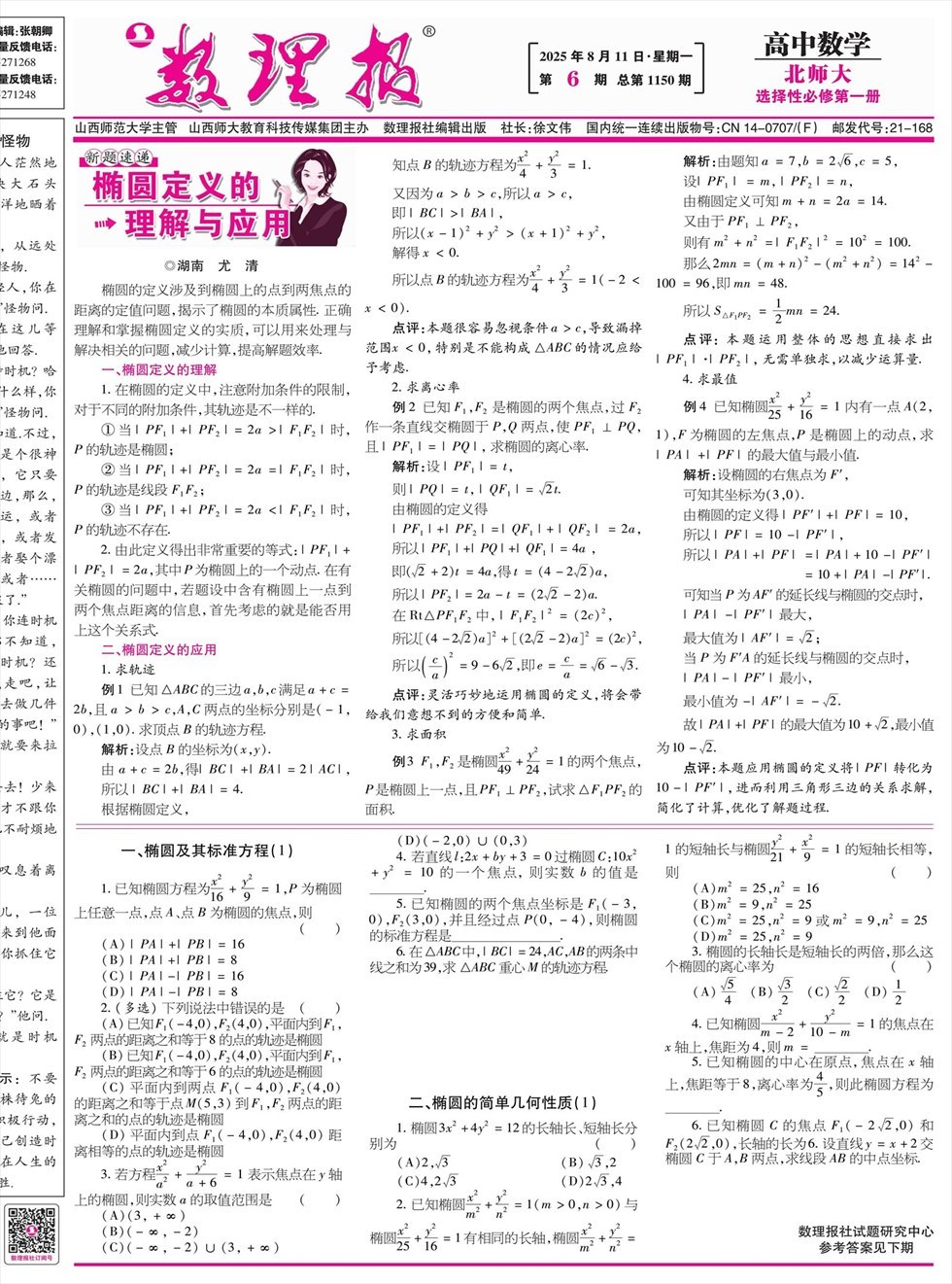 《数理报》是由山西省教育厅主管,山西师范大学主办,面向全国发行的中小学生理科教学辅导类报纸