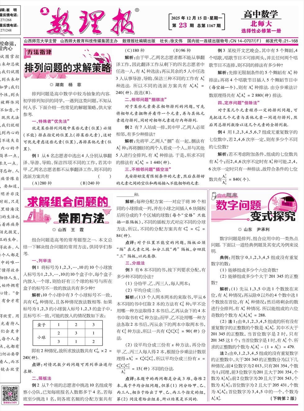 《数理报》是由山西省教育厅主管,山西师范大学主办,面向全国发行的中小学生理科教学辅导类报纸