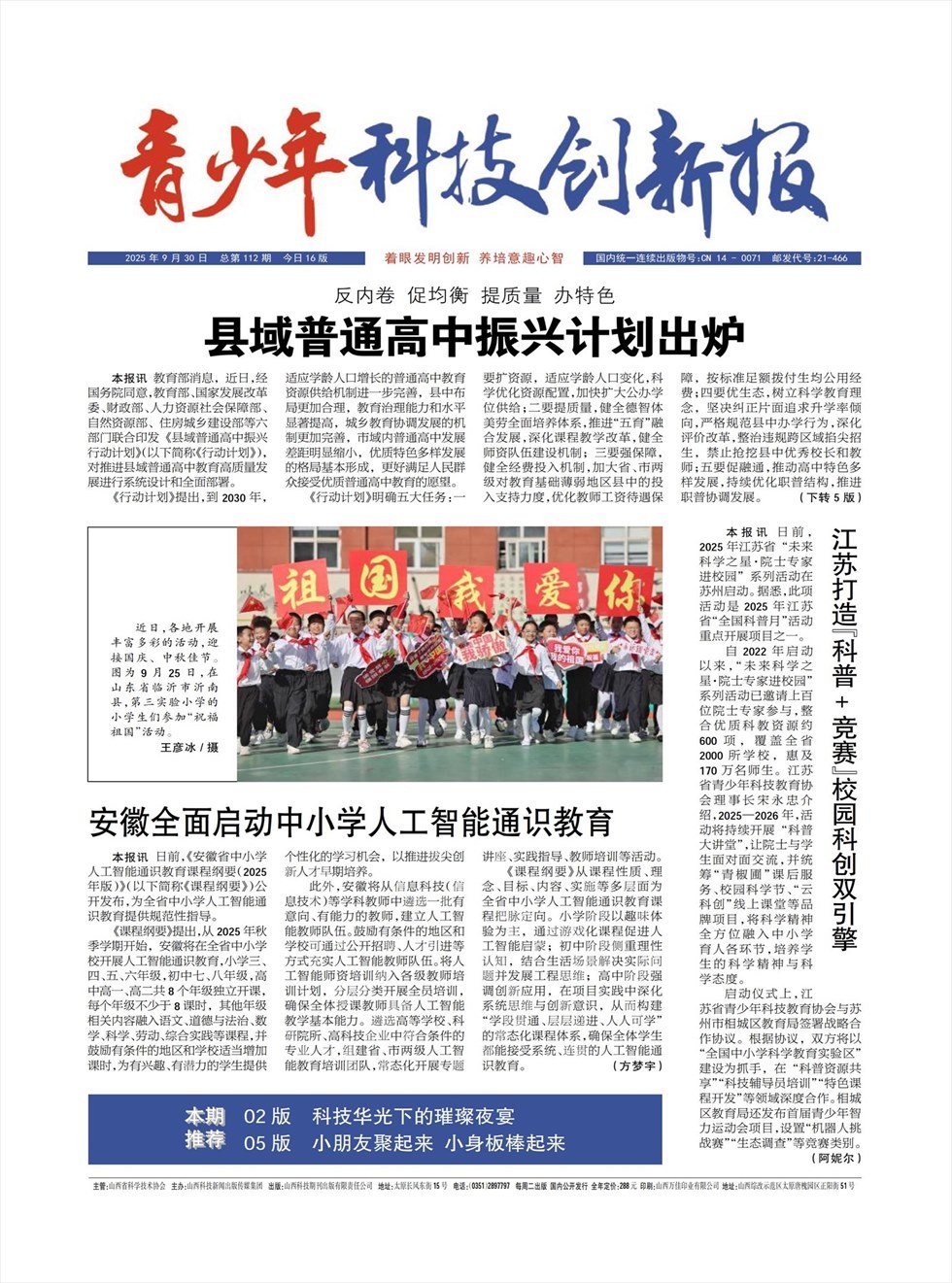 《青少年科技创新报》是一张面向青少年读者的科普类新闻报纸,由山西省科学技术协会主管,山西科技新闻出版传媒集团主办。报纸的宗旨是:着眼发明创新,养培意趣心智。《青少年科技创新报》的前身是《瓜果蔬菜报》。2023年2月,经国家新闻出版署批复,正式更名为《青少年科技创新报》。