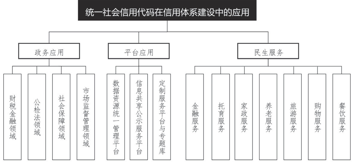 摘 要:统一社会信用代码作为经营主体统一标准的身份标识,可提升行政效能,为构建全面统一的经营主体信用档案筑牢根基,是社会信用体系建设的关键基石。本文围绕政务应用、平台应用和民生服务等实践活动,阐释统一社会信用代码在社会信用体系建设中的应用现状并提出相关建议,为进一步完善社会信用体系提供助力。