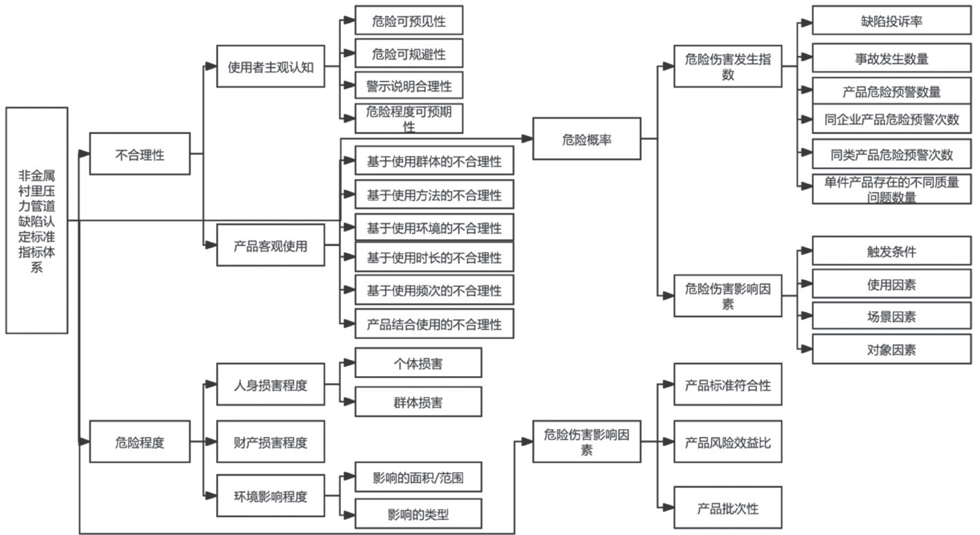 摘 要:本研究旨在构建非金属衬里压力管道缺陷认定标准指标体系,针对当前国内外在此领域的缺陷认定原则进行分析与总结。研究首先从不合理性、危险程度、危险概率和修订指标四个方面,系统性地分析了非金属衬里压力管道的缺陷特征及其影响因素。通过构建这一标准指标体系,期望为非金属衬里压力管道的缺陷认定提供明确的指导,提升管道的安全性和可靠性。