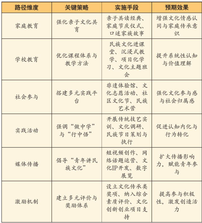 [摘要]民族文化,是一个国家和民族的根基和灵魂,它不仅让我们有了归属感,更是维系民族团结、推动社会和谐的重要力量。作为民族文化的继承者和传播者,青年群体肩负着关键的使命——增强对民族文化的认同感,提升民族文化的凝聚力。本文主要分析了新时代青年对民族文化的认知现状和影响因素,并提出了从认知到行动的教育路径,帮助青年更深入地了解民族文化的内涵,增强文化自信,积极传承和发扬优秀的民族传统文化,为铸牢中华民族共同体意识贡献一份力量。
