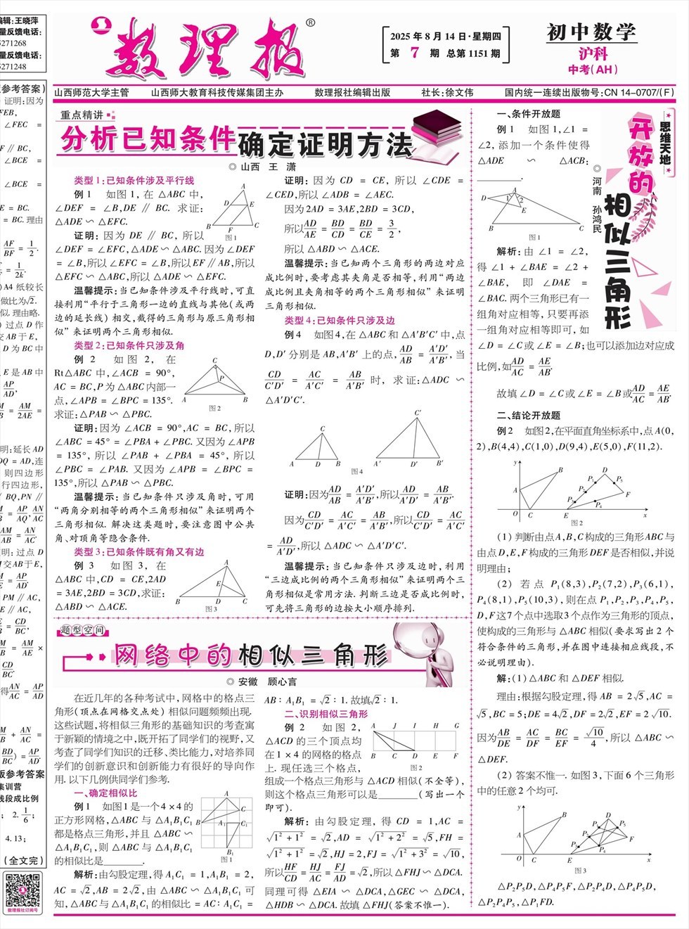 《数理报》是由山西省教育厅主管,山西师范大学主办,面向全国发行的中小学生理科教学辅导类报纸